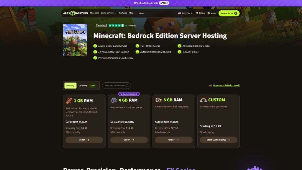 | Apex Hosting | Best Overall | ~$4.49/mo |