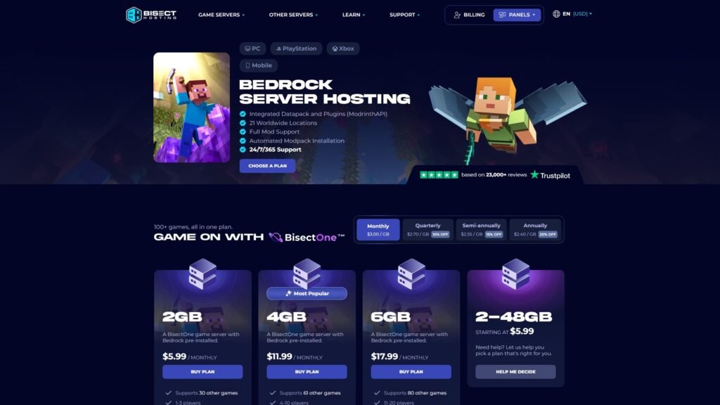 Hostinger is better known for web hosting, but their game panel has improved significantly and performs well for Bedrock servers in the US and Western Europe.